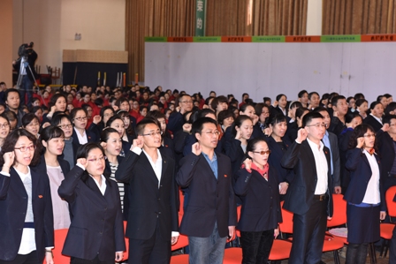 为大力弘扬我校广大教师爱岗敬业、乐于奉献、为人师表的崇高师德风尚,提升教师职业道德素养、推进党员先进性教育活动的开展,打造一支爱岗敬业、品德高尚、无私奉献、公正廉明的教师队伍,4月22日下午3点“师德建设暨党员先进性教育”活动启动仪式在我校文体馆隆重举行。启动仪式由校党总支副书记韩桂娟主持,校领导、全校教职工及290名学生代表参加了此次活动。