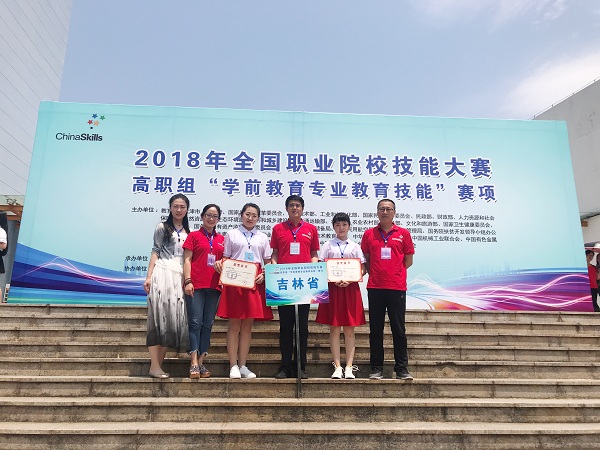 5月23日—25日,2018年全国职业院校技能大赛(高职组)“学前教育专业教育技能”赛项在浙江省金华职业技术学院成功举办。参加本次全国技能大赛的共有来自全国30个省、市、自治区的58支代表队、116名选手,今年是第二届高职组“学前教育专业教育技能”赛项,各个省都非常重视,基本上都是在省赛的基础上选拔的优秀选手,而且大多是国内知名的幼师高专学校,可谓是高手如云。能在这么竞争激烈,得奖比例只有60%的赛项中获奖是每一个参赛队的期盼。最终,有6个学校获得一等奖,12个学校获得二等奖,17个学校获得三等奖。代表吉林省参赛的我校学前教育专科16级的谭旭崴和李月同学凭借自身实力在比赛中发挥出色,突出重围以优异的成绩荣获大赛三等奖,再次为吉林省和学校争得荣誉。