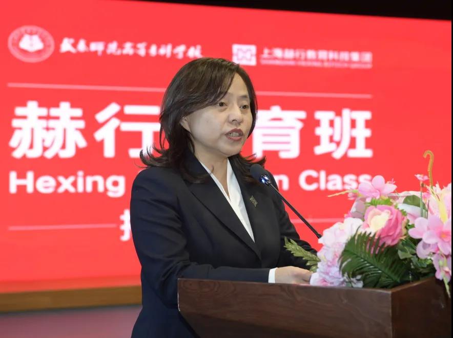 我校合作交流处处长胡海燕回顾了我校与赫行教育集团签约以来所取得的成就,向参会嘉宾介绍了我校目前在校企合作领域的进展及学校整体发展的状况;同时向“赫行教育班”首批学员提出了三点希望:勉励同学们努力学习、勇于实践、珍惜成长的平台;严格遵守学校和集团的各项规章制度,在跟岗实践中开拓视野、学有所获;努力争做有理想信念、有道德情操、有扎实学识、有仁爱之心的四有好教师。