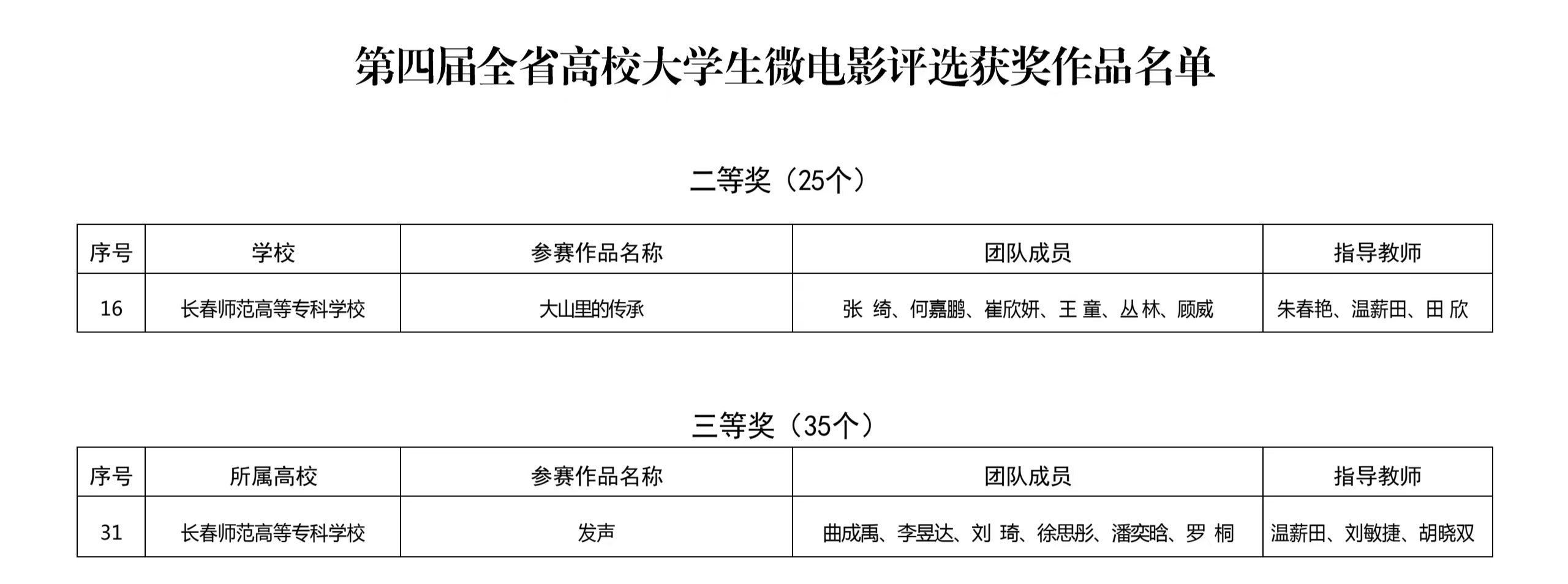 10月31日,吉林省教育厅公布了《第七届全省高校大学生讲思政课大赛获奖名单》和《第四届全省高校大学生微电影评选获奖作品名单》。我校推荐参赛的4个作品荣获两项二等奖、两项三等奖,在获奖级别、获奖数量上均取得历史性突破。