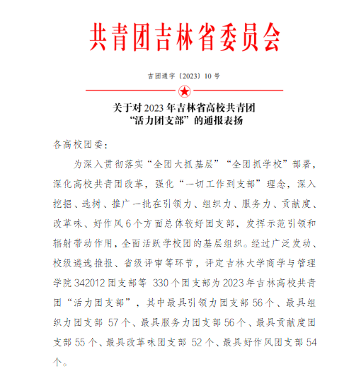 我校在2023年吉林省高校共青团“活力团支部”“活力社团”评选中取得佳绩