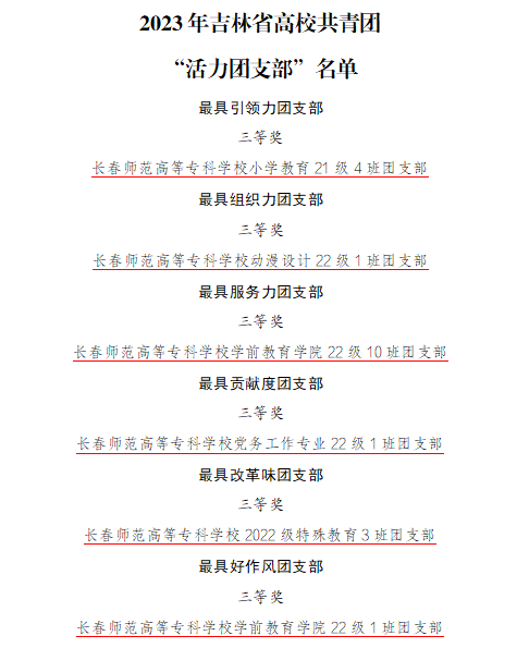 我校在2023年吉林省高校共青团“活力团支部”“活力社团”评选中取得佳绩-国产一区二区日本在线-Changchun Normal College-官方网站