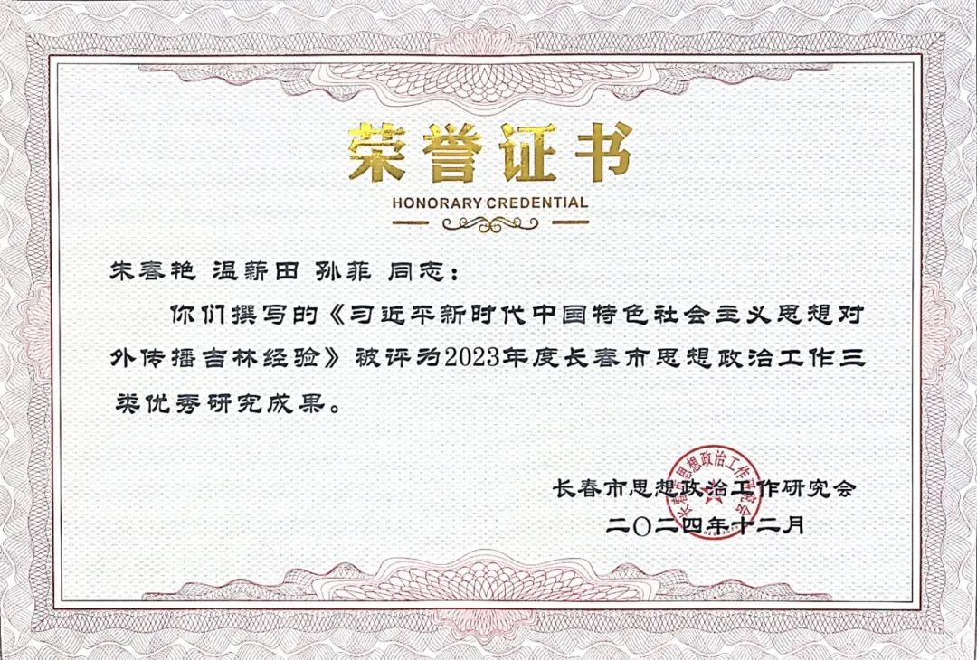 我校在2023年度长春市思想政治工作优秀研究成果评选活动中喜获佳绩-国产一区二区日本在线-Changchun Normal College-官方网站