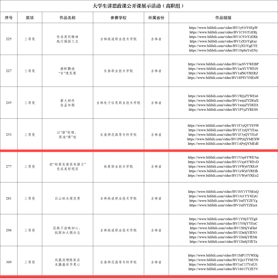 近日,第八届全国高校大学生讲思政课公开课展示活动圆满落幕,全国1339所高校共提交5007件参赛作品,其中本科组和高职组各有318项作品获奖、专项组有55项作品获奖。在吉林省8项高职组获奖作品中,我校2项参赛作品《以“新”创领,质造“旗”迹》与《凤凰涅槃陈家店 龙腾盛世华夏心》均荣获三等奖。