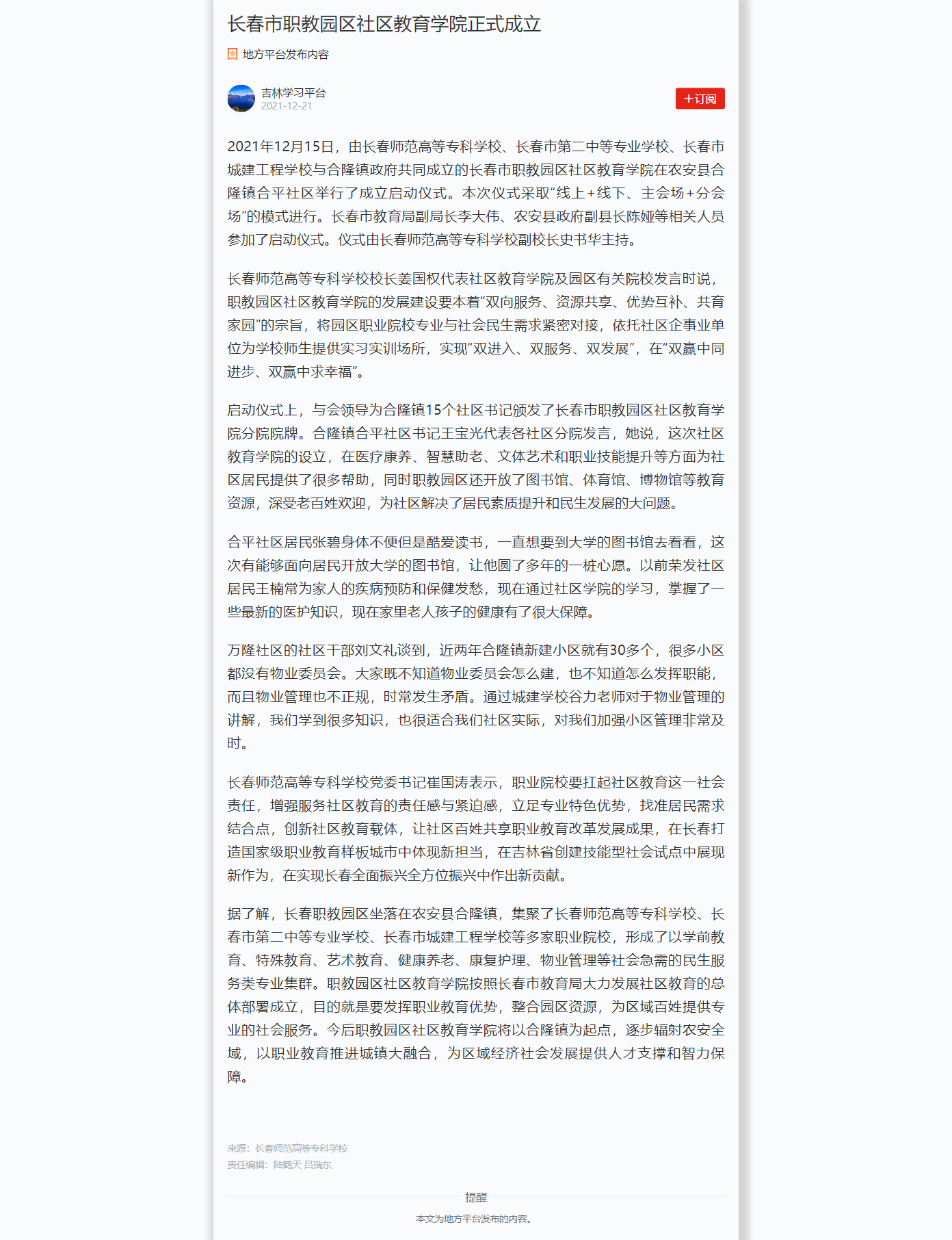 长春市职教园区社区教育学院正式成立-国产一区二区日本在线-Changchun Normal College-官方网站